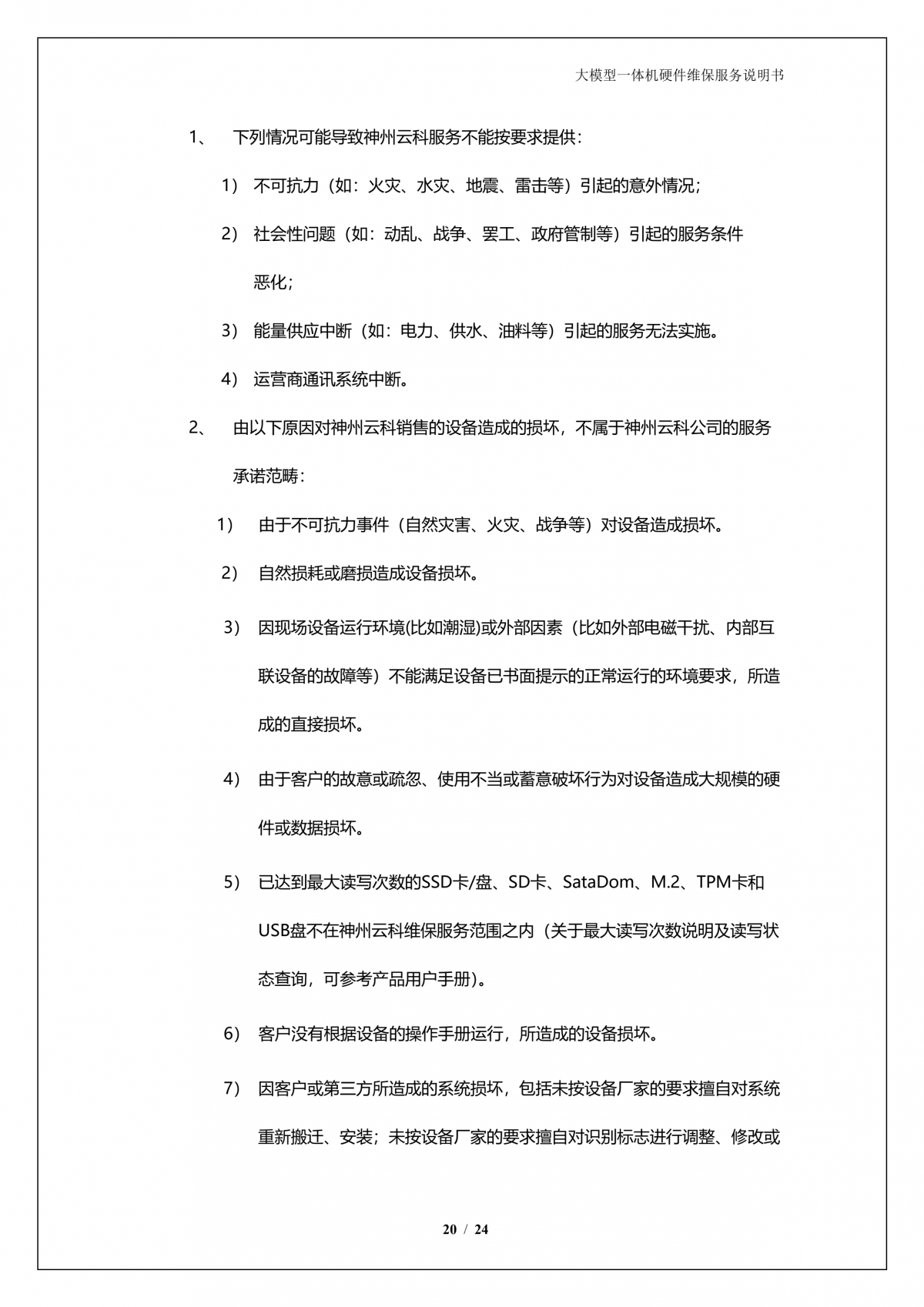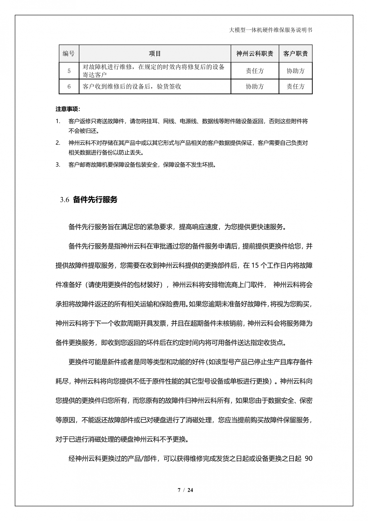 神州A924 DS大模型一体机硬件维保服务说明书_V1.1